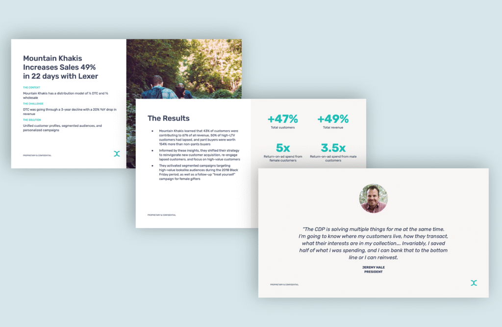 Lexer Marketing Collateral Lexer’s customer data platform helps brands and retailers understand and engage customers. As part of the in-house design team, following brand guidelines, I created clear and functional marketing collateral and website assets. < Dahl Daddys Go on, click through to take a look at more of my work! Havilah >