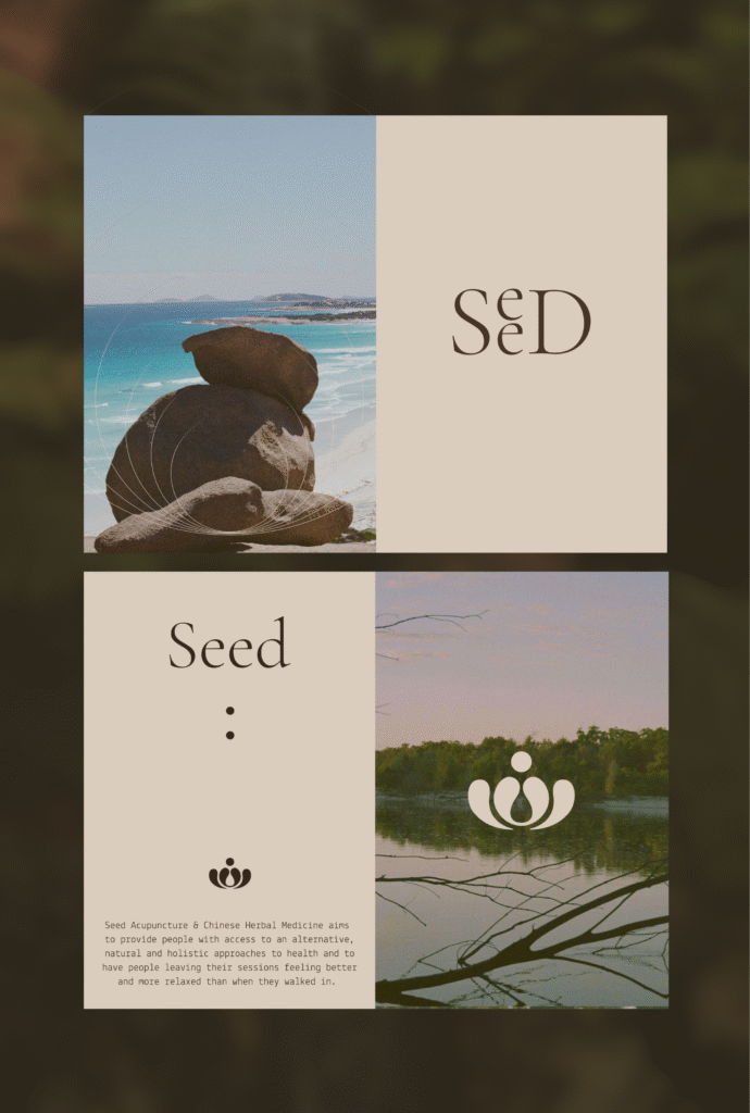 Esperance-based Seed Acupuncture & Chinese Herbal Medicine offers a natural, holistic path to wellness, backed by modern research to support treatment methods. We crafted a brand identity that evokes a sense of calm and quiet reflection. A coastal-inspired colour palette connects with the Esperance community, while a clean, modern typographic system reflects Seed’s commitment to contemporary scientific research. The icon is a modern interpretation of the yin-yang symbol, representing balance, renewal, and the brand’s philosophy of blending tradition with modern practice.